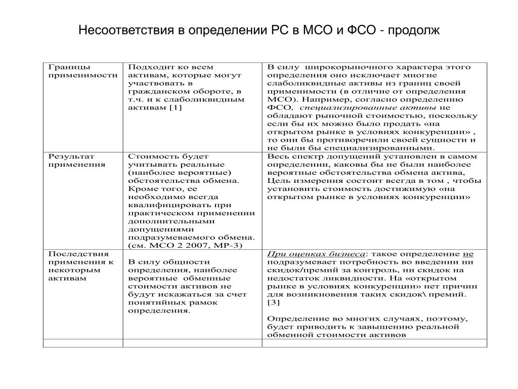 Несоответствия в определении РС в МСО и ФСО - продолж