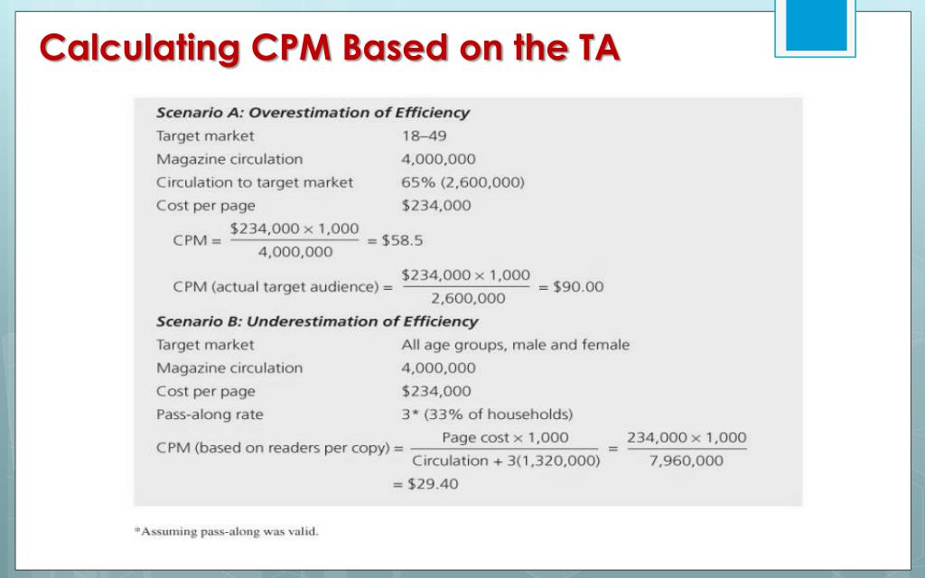 Determining Relative Cost of Media - CPM Cost per thousand (CPM) Cost to Advertise CPM = X 1,000 Circulation