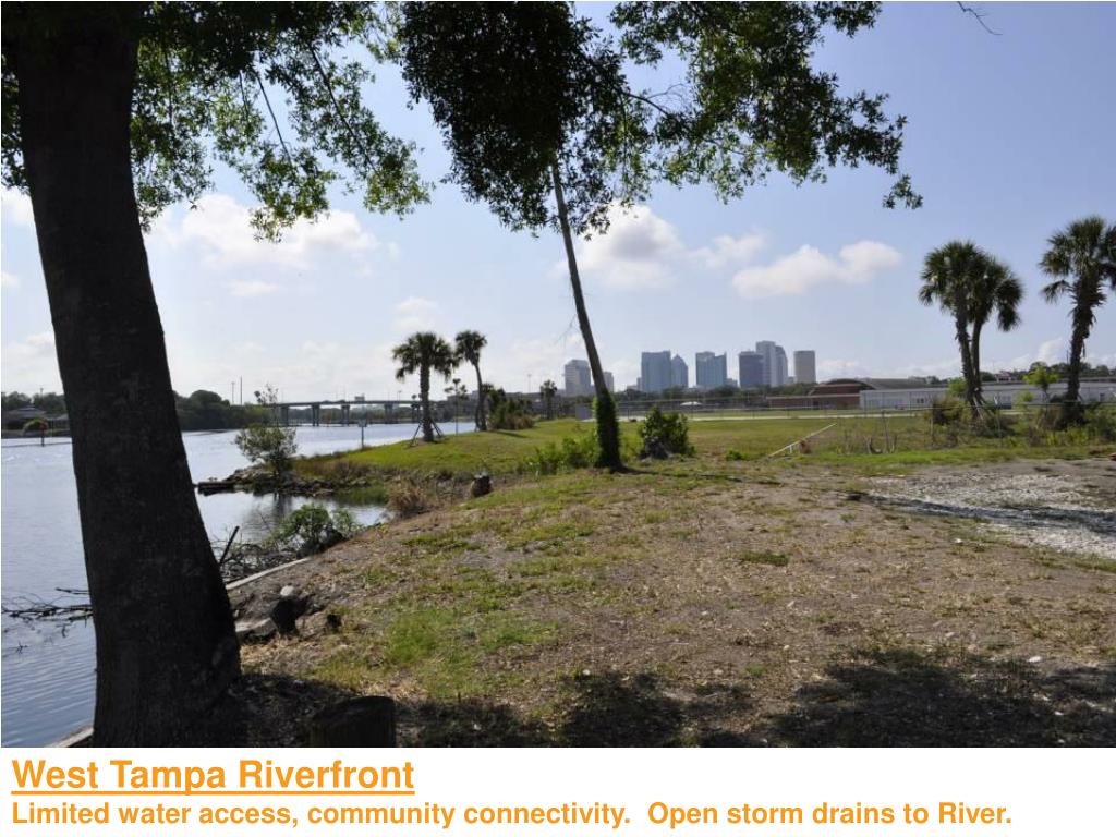 West Tampa Riverfront Limited water access, community connectivity. Open storm drains to River.