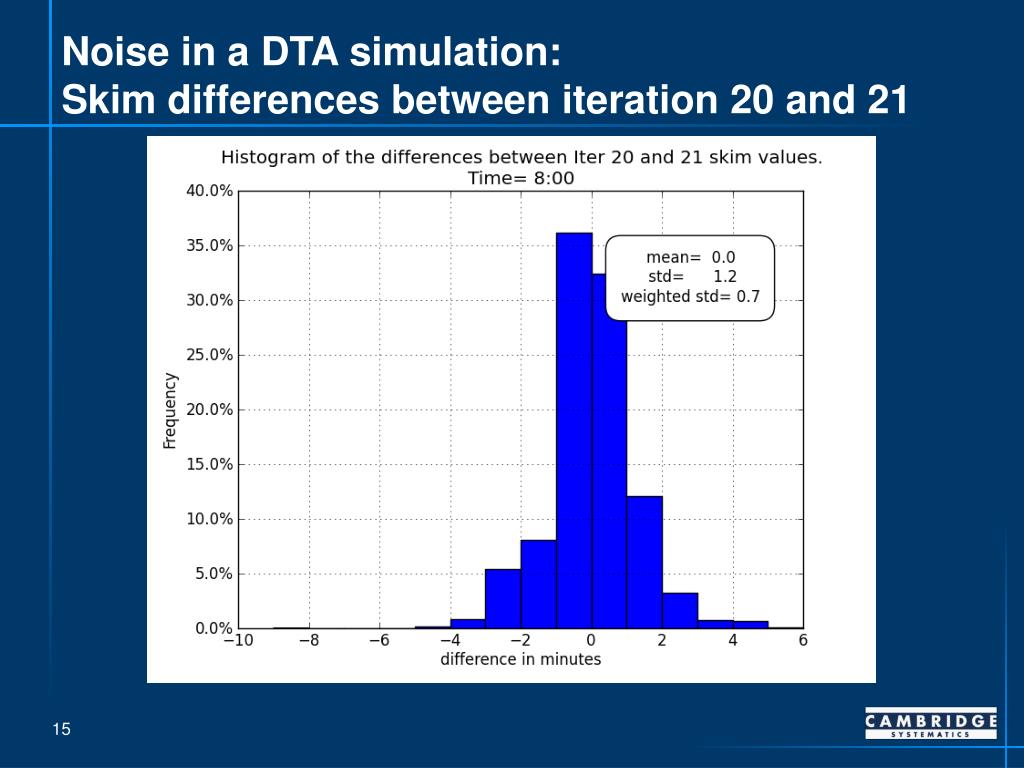 Noise in a DTA simulation: Skim differences between iteration 20 and 21