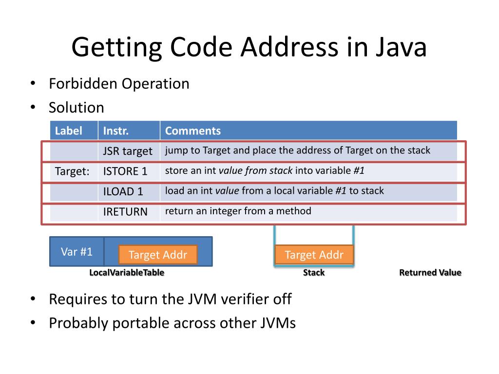 Long-Jumping with an Address in Java • Uses the calculated address in the local variable table