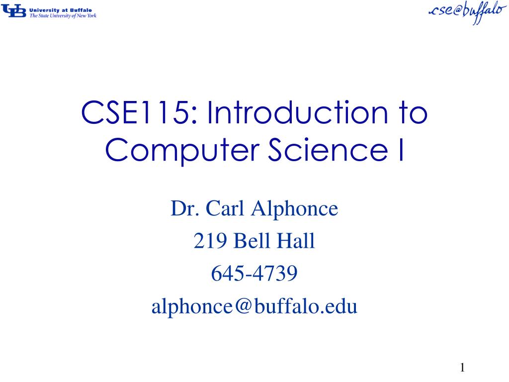 CSE115: Introduction to Computer Science I Dr. Carl Alphonce 219 Bell Hall 645-4739 alphonce@buffalo.edu