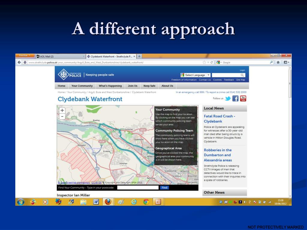 The future... • Single police service – Shetland to Stranraer • National / Corporate & Local / Relevant • Shape of corporate communications • Best model to use – devolved or centrally managed • Retaining followers & likes • Single approach and policy... But with flexibility