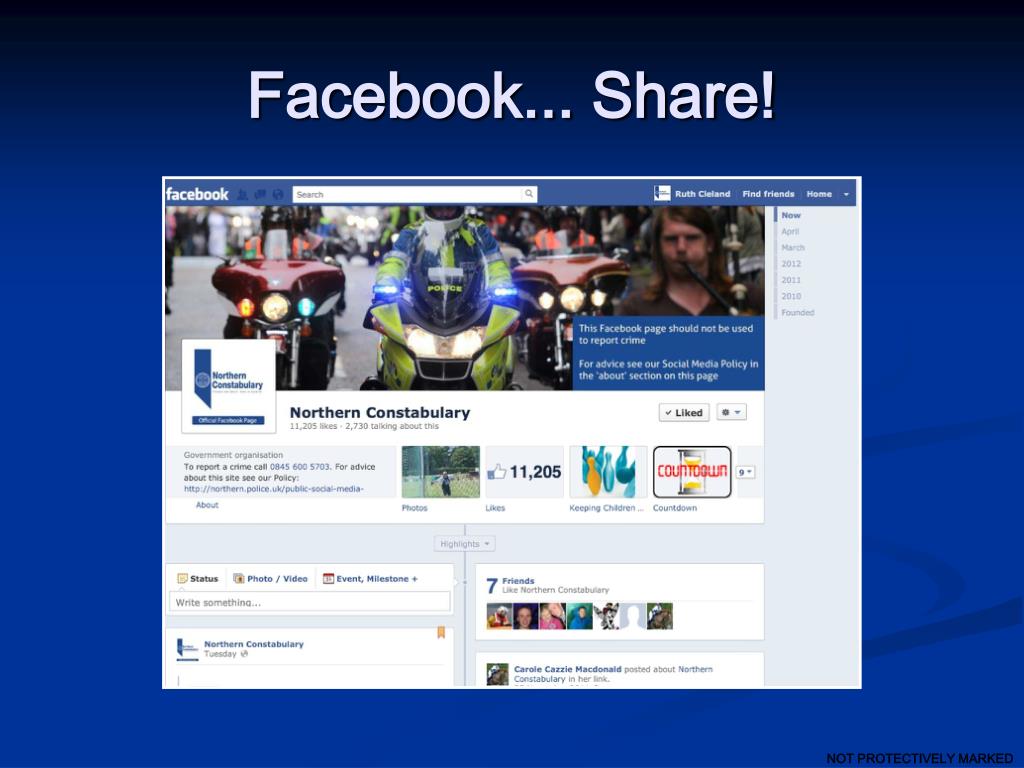 Welcome to the digital era • Northern & CSP on Twitter in 2009 • Northern & CSP on Facebook in 2010 • First forces in Scotland • Integrated into mainstream comms approach • Audience growth • Direct engagement • Factual information