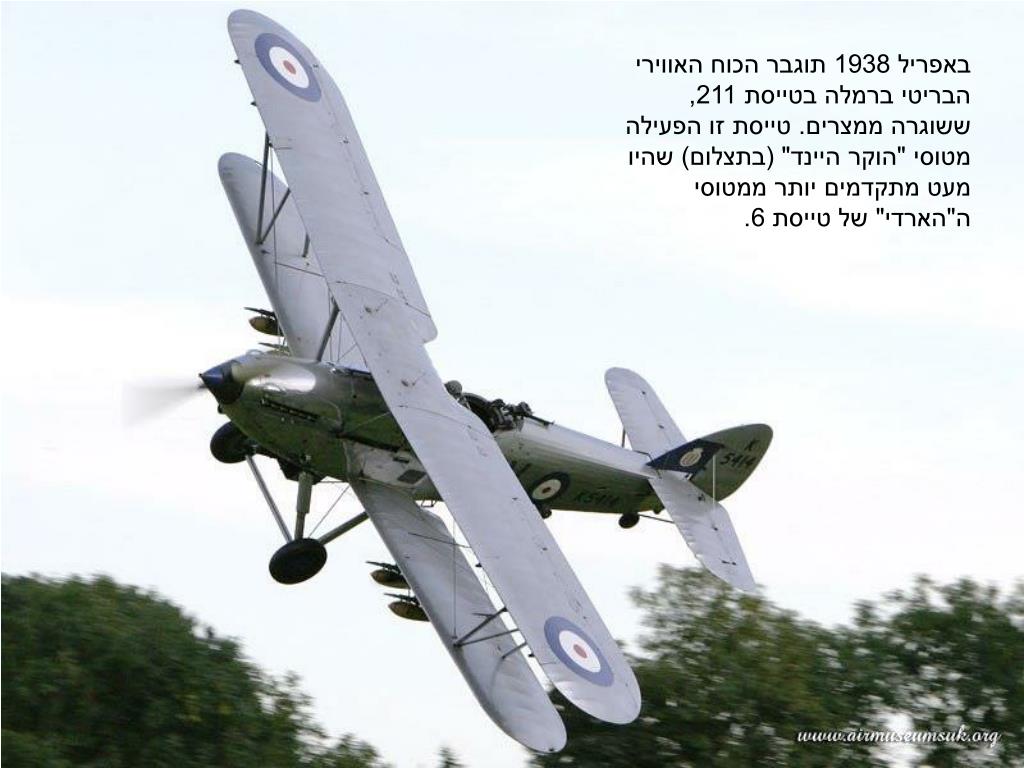 באפריל 1938 תוגבר הכוח האווירי הבריטי ברמלה בטייסת 211, ששוגרה ממצרים. טייסת זו הפעילה מטוסי "הוקר היינד" (בתצלום) שהיו מעט מתקדמים יותר ממטוסי ה"הארדי" של טייסת 6.