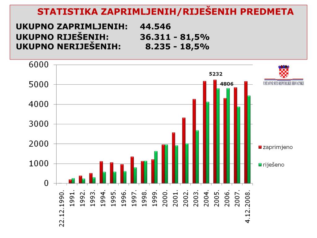 STATISTIKA ZAPRIMLJENIH/RIJEŠENIH PREDMETA UKUPNO ZAPRIMLJENIH: 44.546 UKUPNO RIJEŠENIH: 36.311 - 81,5%UKUPNO NERIJEŠENIH: 8.235 - 18,5%
