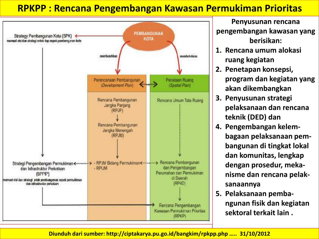 Rencana Pengembangan Kawasan Permukiman Prioritas (RPKPP) di Perkotaan dan Perdesaan Diunduh dari sumber: http://ciptakarya.pu.go.id/bangkim/rpkpp.php ….. 31/10/2012