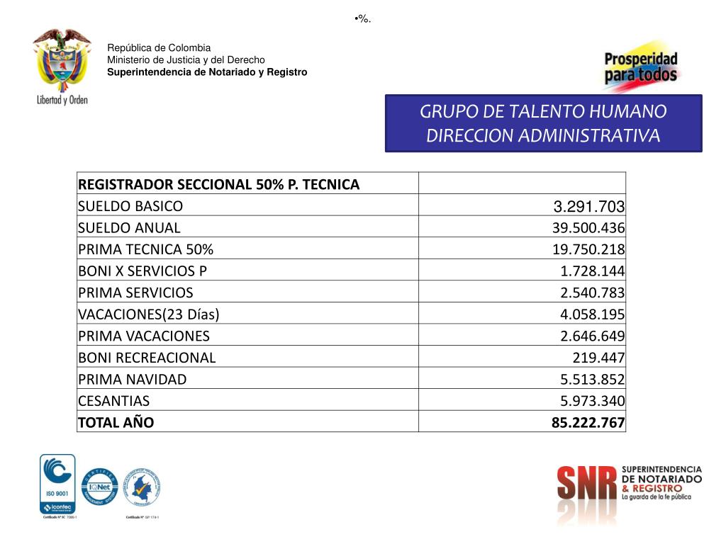 %. Repúblicade Colombia Ministerio de Justicia y del DerechoSuperintendencia de Notariado y Registro GRUPO DE TALENTO HUMANO DIRECCION ADMINISTRATIVA