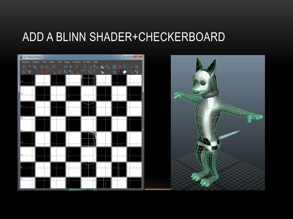 Paint yer doggie • Under the “Rendering” set of menus (Texturing->3D Paint Tool->□) • Make sure the Attribute to Paint is set to Color • Assign/Edit Textures: