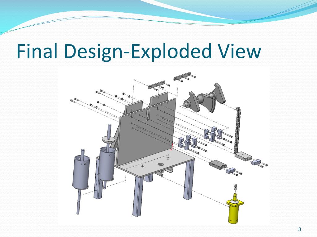 Final Design Key Features: Common Shaft: Rigidly connects two clamps to reduce the quantity of hydraulic cylinders Spring System: Springs supply 1500 [lb] clamping force rather than the hydraulic cylinders Release Arm: Allows for release of the spar. Prevents side loading of the hydraulic cylinder.