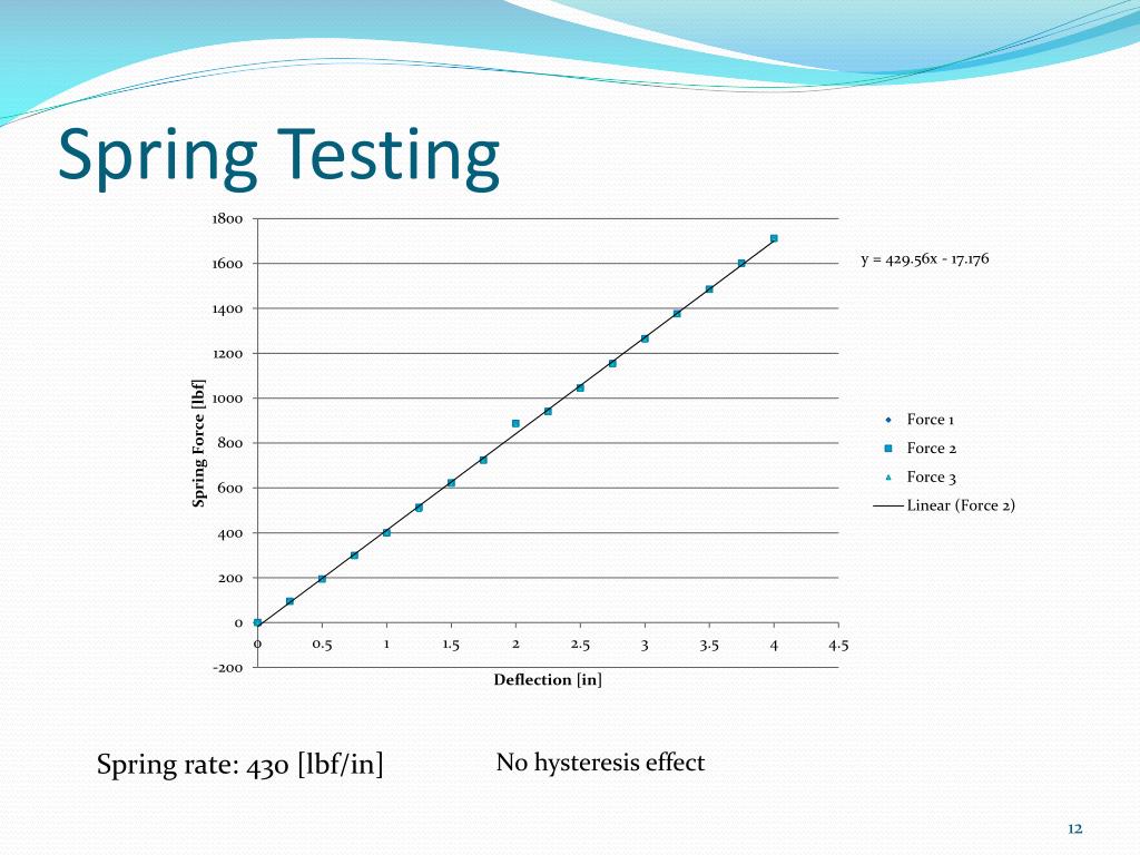 Spring Testing Spring rate: 430 [lbf/in] No hysteresis effect