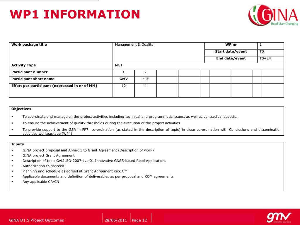WP1 INFORMATION GINA D1.5 Project Outcomes