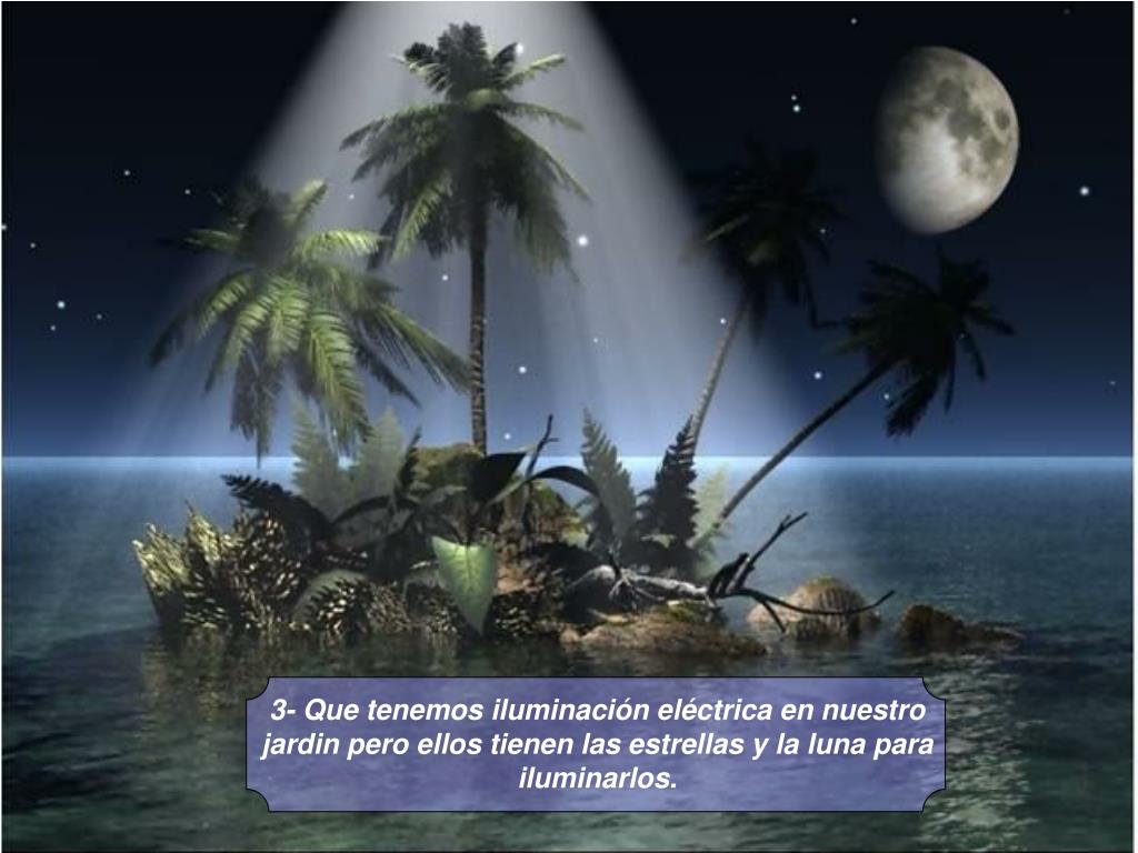 3- Que tenemos iluminación eléctrica en nuestro jardin pero ellos tienen las estrellas y la luna para iluminarlos.
