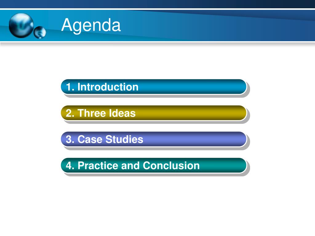 Agenda 1. Introduction 2. Three Ideas 3. Case Studies 4. Practice and Conclusion