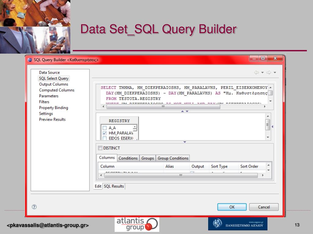 Data Source = Database • You can “easily” integrate a database in “BIRT” application • BIRT from http://www.eclipse.org/birt/phoenix/ is coming with a Sample Database • BIRT provided by the course, too!