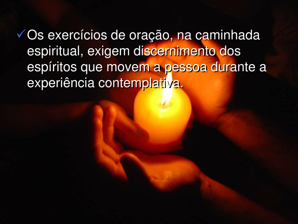 Os exercícios de oração, na caminhada espiritual, exigem discernimento dos espíritos que movem a pessoa durante a experiência contemplativa.