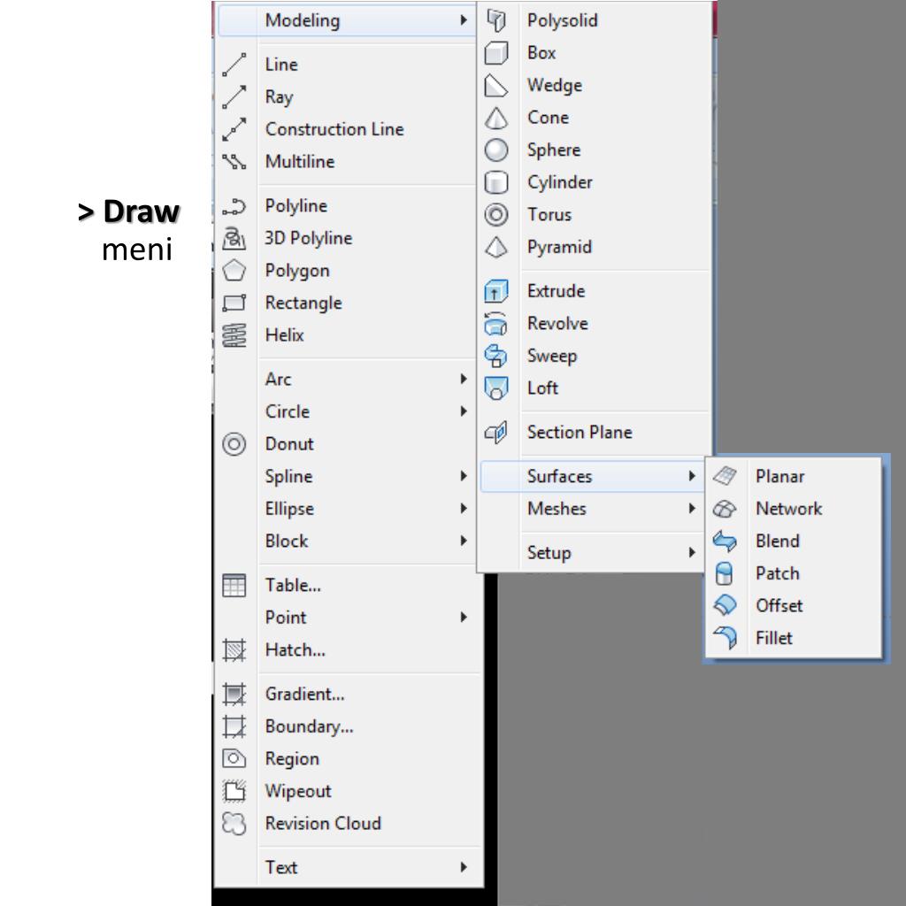 > Trake sa komandama (ribbons) Drafting and Annotation 3D Basics 3D Modeling