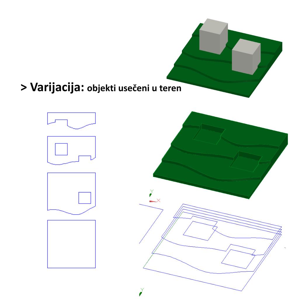 >Primer: Model terena • Komande: • Layer • Rectangle • Spline • Boundary • Extrude • Extract edges • Copy • Move • LayoutExport PDF
