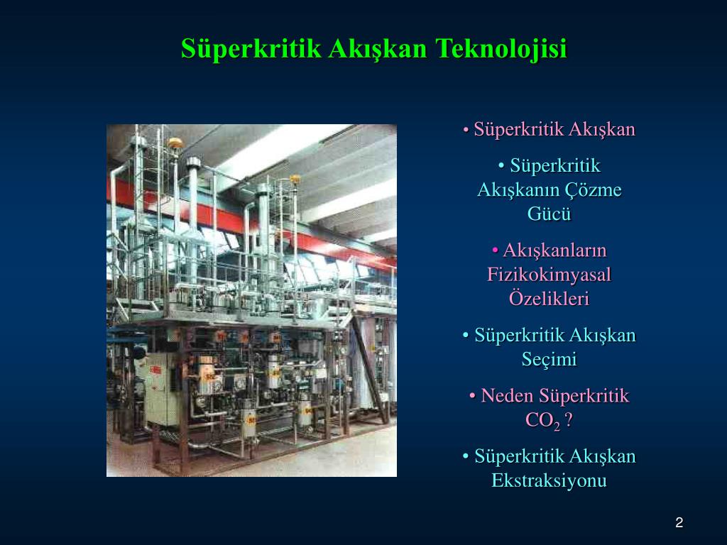 Süperkritik Akışkan Teknolojisi • Süperkritik Akışkan • Süperkritik Akışkanın Çözme Gücü • Akışkanların Fizikokimyasal Özelikleri • Süperkritik Akışkan Seçimi • Neden Süperkritik CO2 ? • Süperkritik Akışkan Ekstraksiyonu