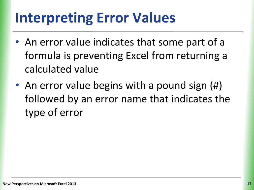 Interpreting Error Values New Perspectives on Microsoft Excel 2013
