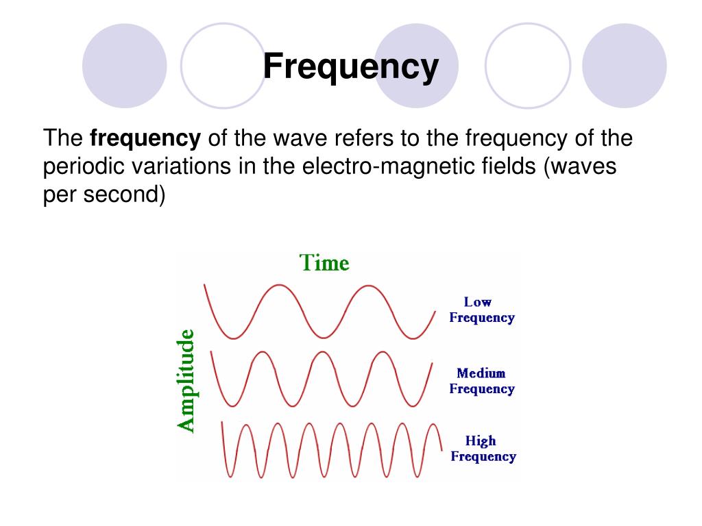 Frequency The frequency of the wave refers to the frequency of the periodic variations in the electro-magnetic fields (waves per second)