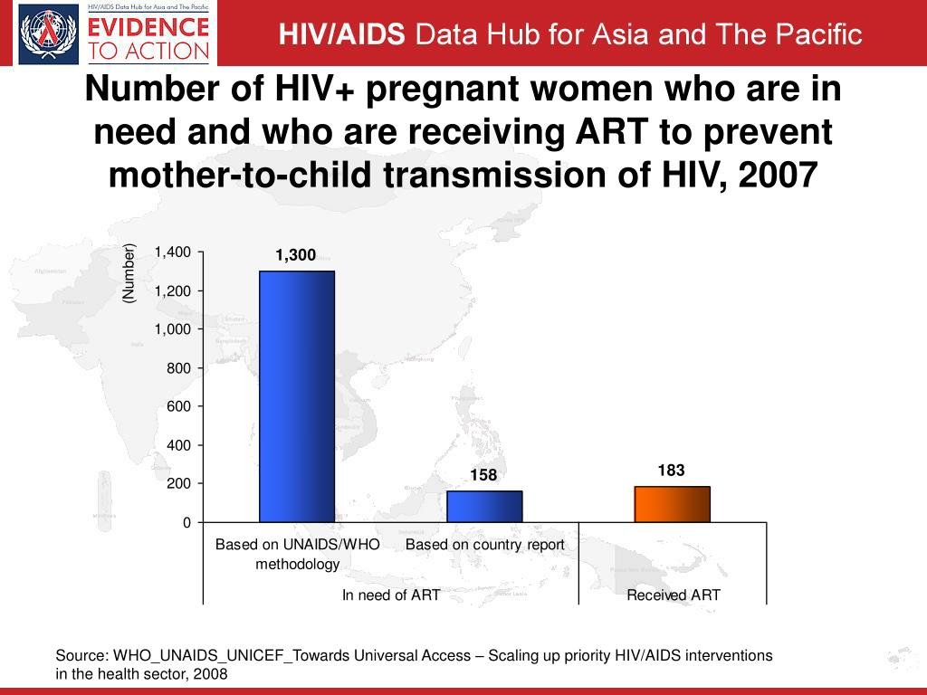 HIV prevalence among pregnant women, by state, 2003 • In Malaysia, • HIV testing is mandatory for women attending government antenatal facilities. • In 2005, 358,622 antenatal women were tested, only 0.04% (154) were found HIV+. However, estimated number of HIV+ pregnant women is 1400 in year 2005. • National HIV prevalence among antenatal women is less than 0.01%. Source: UNAIDS, Epidemiological Fact Sheets, 2006