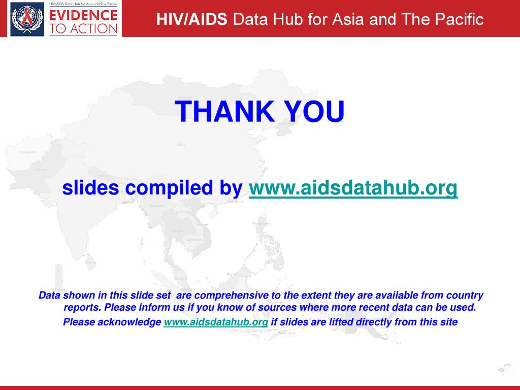 THANK YOU slides compiled by www.aidsdatahub.org Data shown in this slide set are comprehensive to the extent they are available from country reports. Please inform us if you know of sources where more recent data can be used. Please acknowledge www.aidsdatahub.org if slides are lifted directly from this site