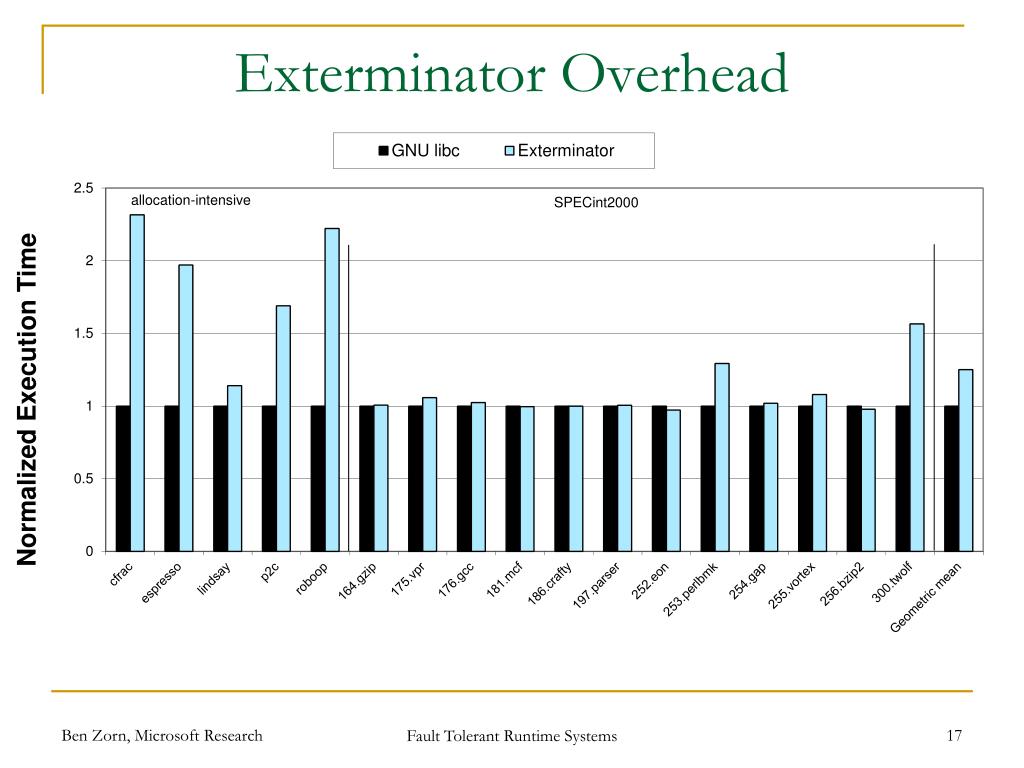 Exterminator Overhead Fault Tolerant Runtime Systems