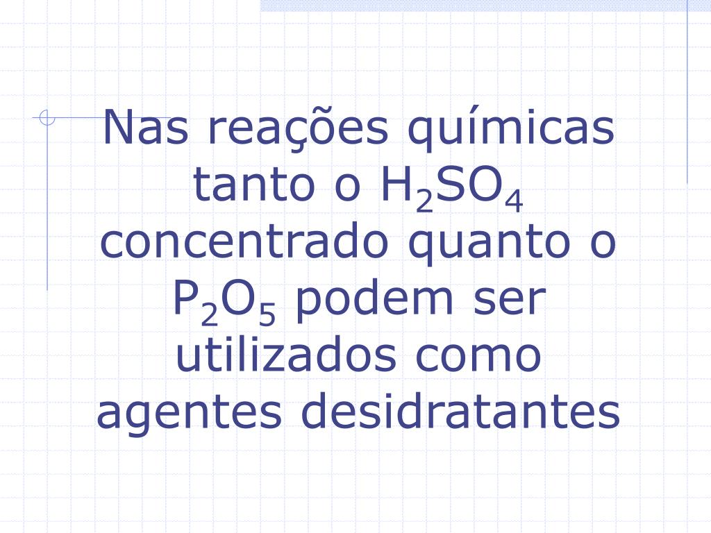 Nas reações químicas tanto o H2SO4 concentrado quanto o P2O5 podem ser utilizados como agentes desidratantes
