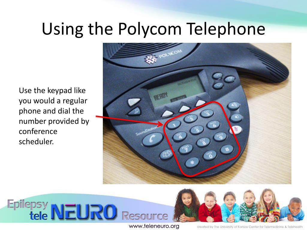 Using the PolycomTelephone Use the keypad like you would a regular phone and dial the number provided by conference scheduler.