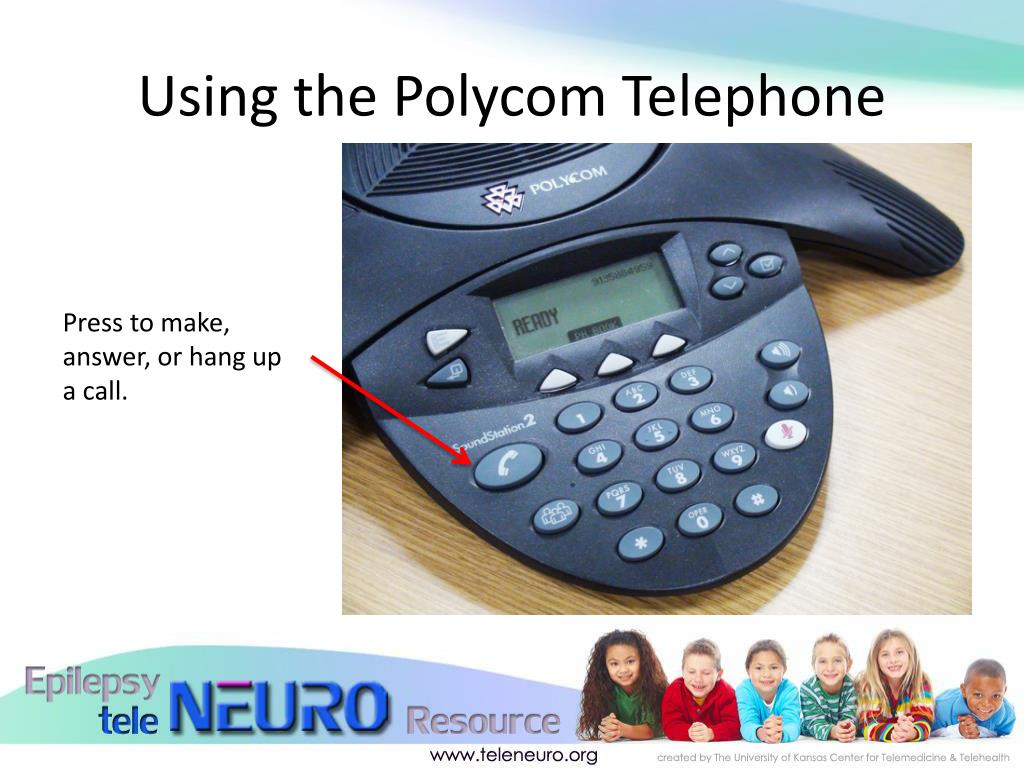 Using the PolycomTelephone Press to make, answer, or hang up a call.
