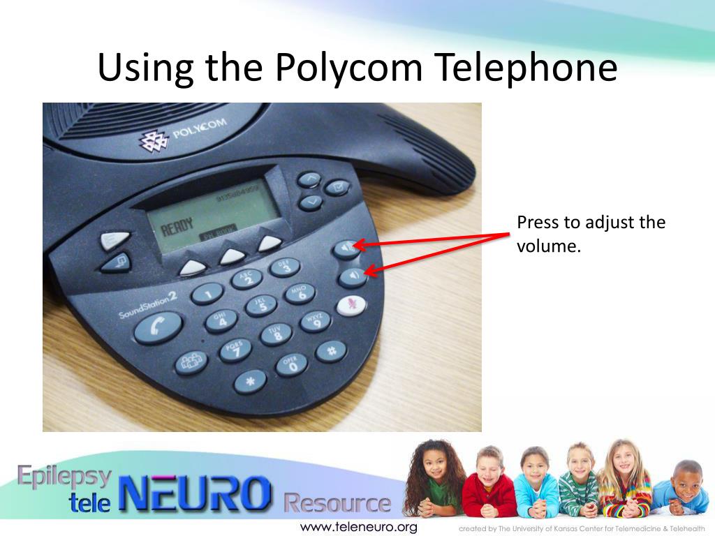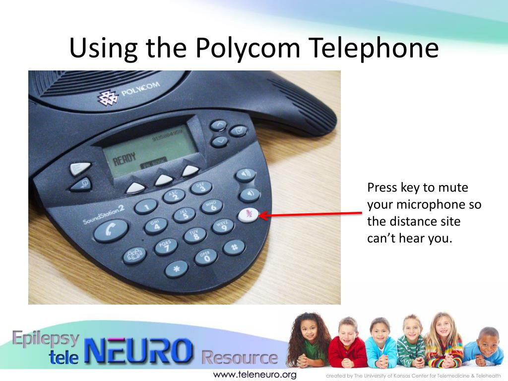 Using the PolycomTelephone Press key to mute your microphone so the distance site can’t hear you.