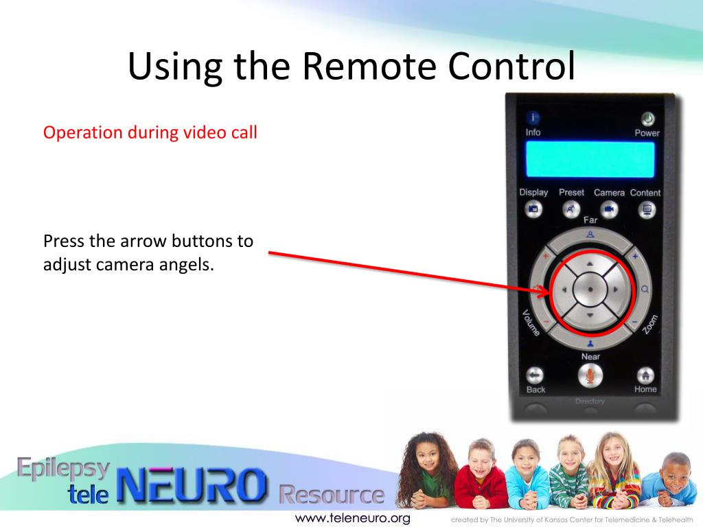 Using the Remote Control Operation during video call • Remote controls will vary based on different televideo systems. • The remote control will be introduced in two parts: • Operation for dialing • Operation during the televideo call Operation for dialing