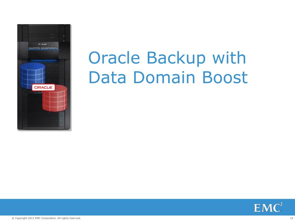 For more information… http://www.emc.com/collateral/hardware/white-papers/h10683-dd-boost-oracle-rman-tech-review-wp.pdf http://www.emc.com/backup-and-recovery/data-domain/index.htm http://www.emc.com/collateral/software/white-papers/h7219-data-domain-data-invul-arch-wp.pdf http://www.emc.com/collateral/analyst-reports/idc-worldwide-purpose-built-backup-appliance.pdf