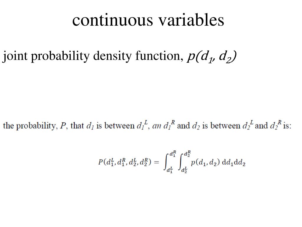 d2L d2L if the probability density function , p(d1,d2), is though of as a cloud made of water vapor p(d1,d2) d2 d1L the probability that (d1,d2) is in the box given by the total mass of water vapor in the box d1 d1R