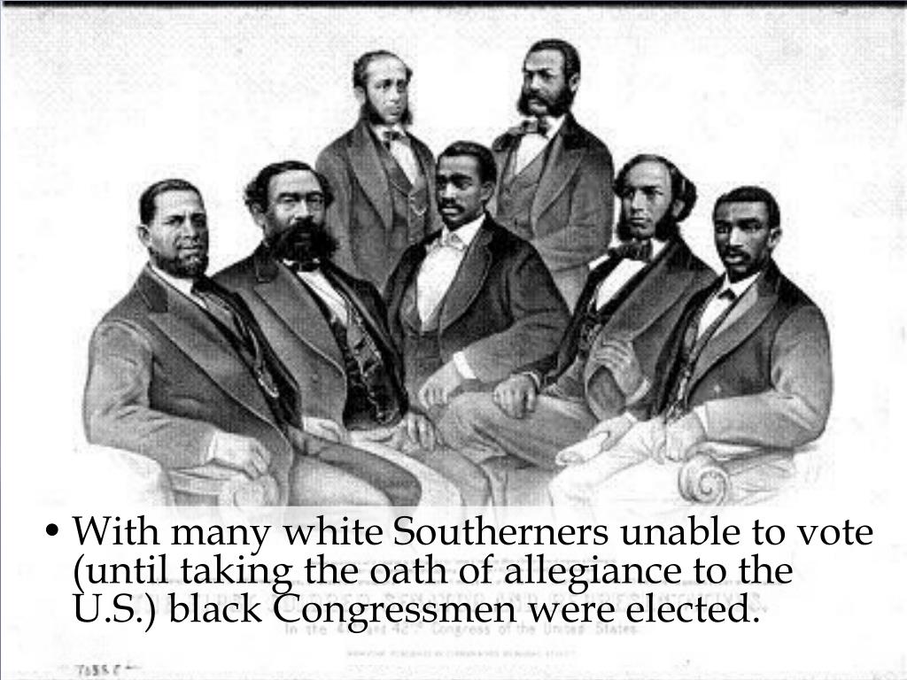 With many white Southerners unable to vote (until taking the oath of allegiance to the U.S.) black Congressmen were elected.