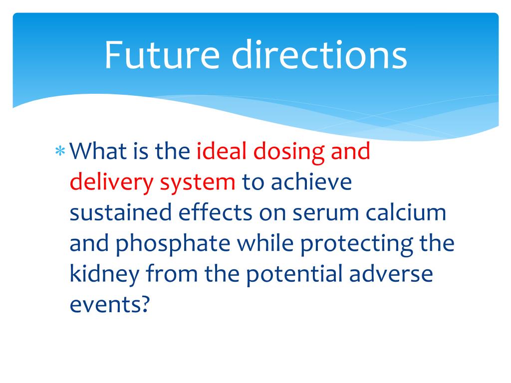 Future directions What is the ideal dosing and delivery system to achieve sustained effects on serum calcium and phosphate while protecting the kidney from the potential adverse events?