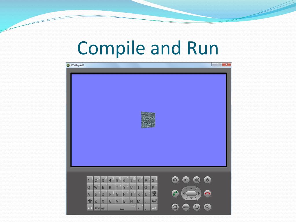 Tryourclasses I. • MainEngine: • RemoveprotectedFloatBuffer VB = null; • Add: Material m; Texture t; Mesh mesh; • Init: publicvoidinit() { GLES10.glClearColor(0.5F, 0.5F, 1.0F, 1.0F); t = newTexture("TestTexture"); t.setFileName("brick.jpg"); t.load(); m = newMaterial("TestMaterial"); m.setTexture(t); m.load(); mesh = newQuad("TestQuad"); mesh.load(); }