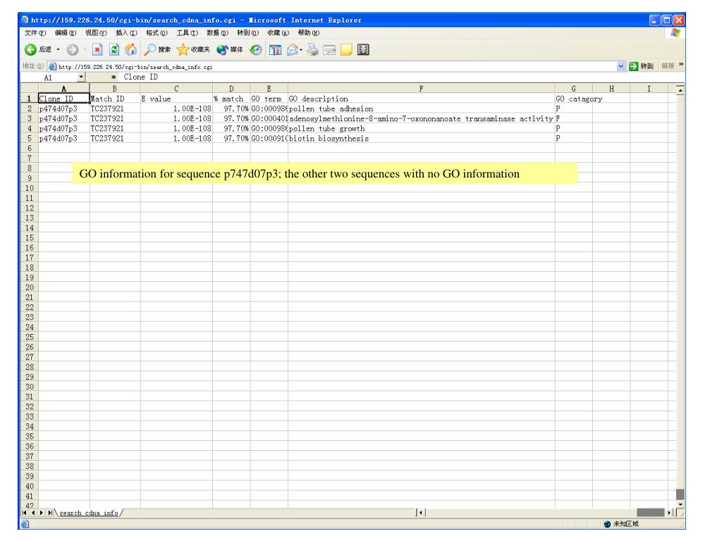 Search the clone ID for sequences Click here to do blast against cDNA clone database