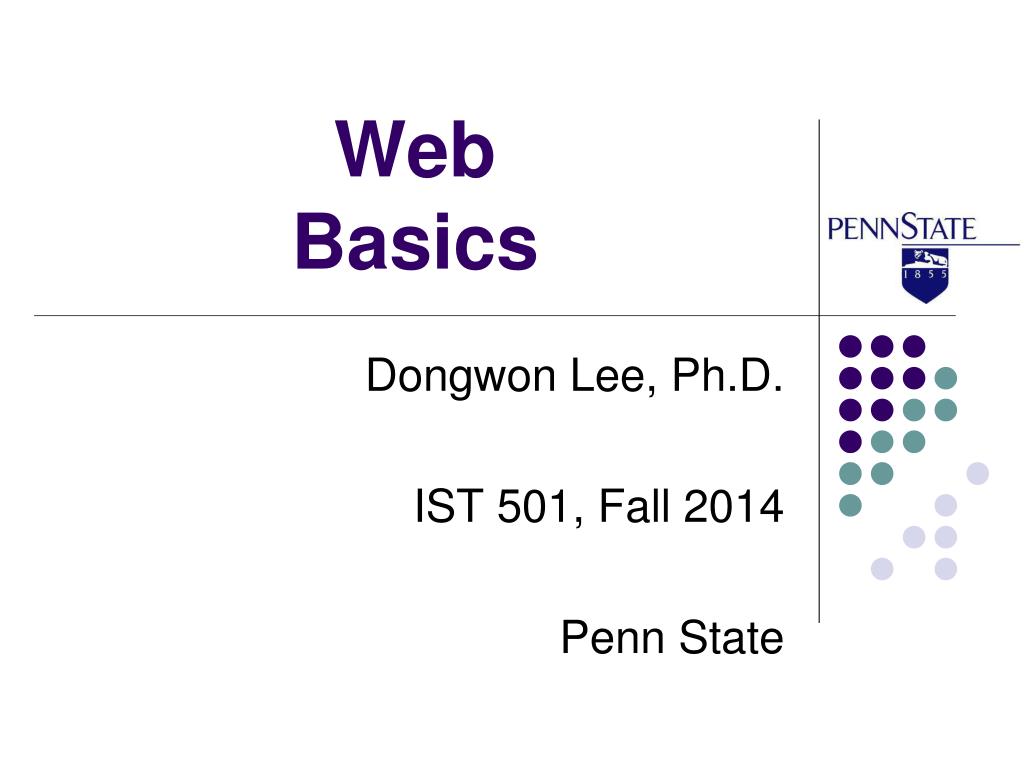 WebBasics Dongwon Lee, Ph.D. IST 501, Fall 2014 Penn State
