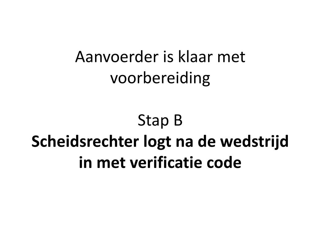 Aanvoerder is klaar met voorbereiding Stap B Scheidsrechter logt na de wedstrijd in met verificatie code