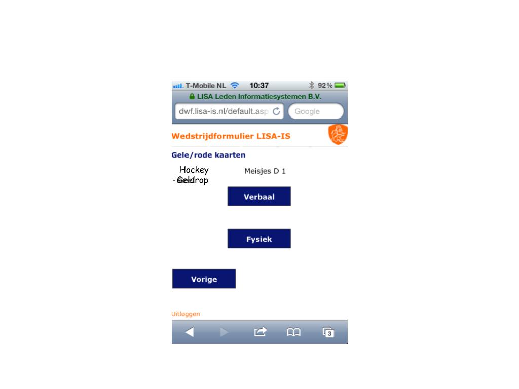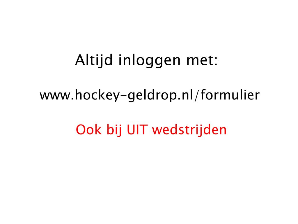 Altijd inloggen met: www.hockey-geldrop.nl/formulier Ook bij UIT wedstrijden