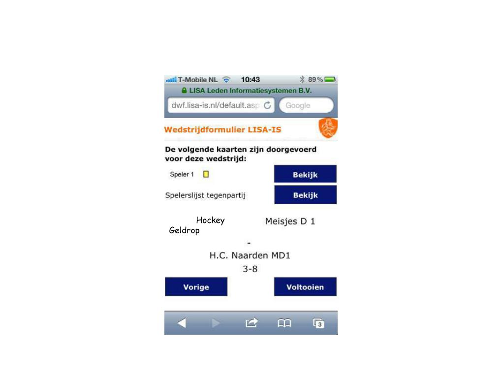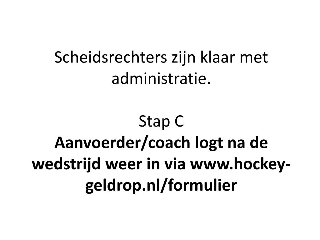 Scheidsrechters zijn klaar met administratie. Stap C Aanvoerder/coach logt na de wedstrijd weer in via www.hockey-geldrop.nl/formulier