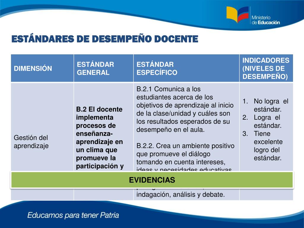 ESTÁNDARES DE DESEMPEÑO DOCENTE EVIDENCIAS