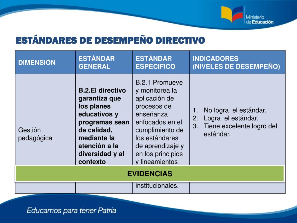 ESTÁNDARES DE DESEMPEÑO DIRECTIVO EVIDENCIAS