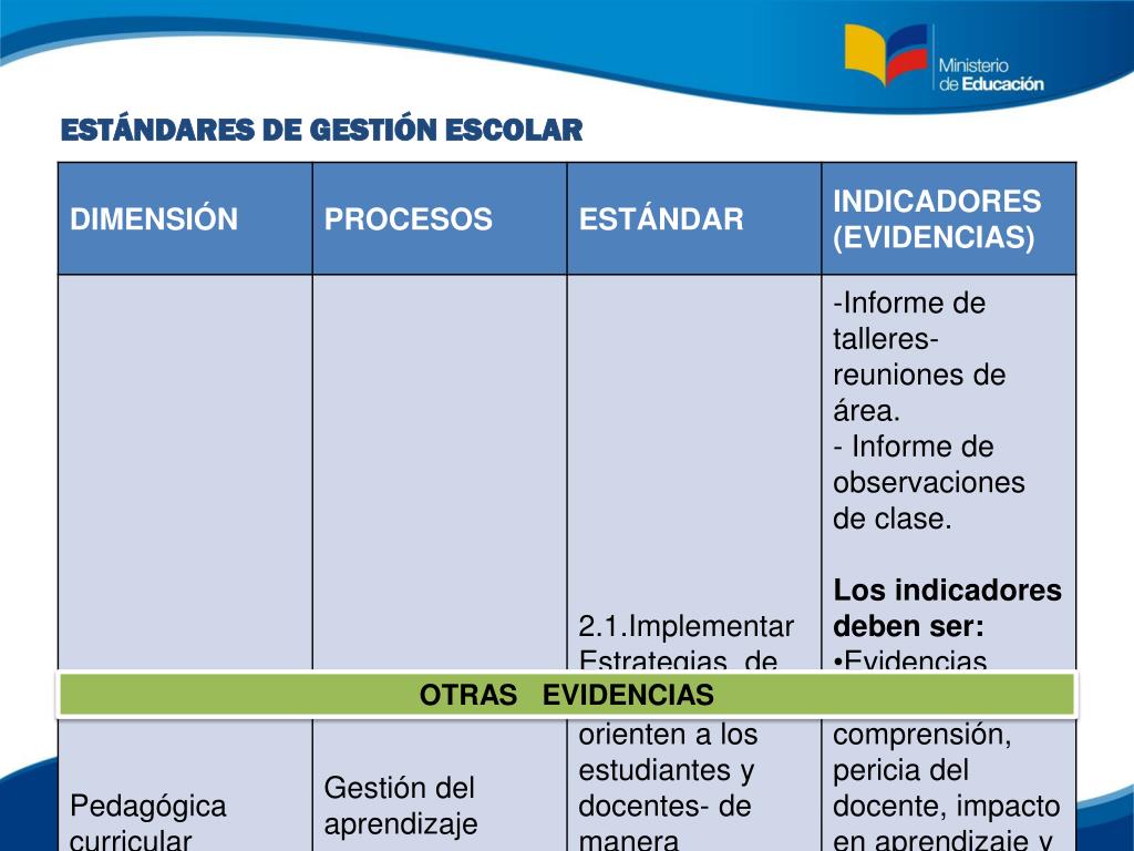 ESTÁNDARES DE GESTIÓN ESCOLAR OTRAS EVIDENCIAS