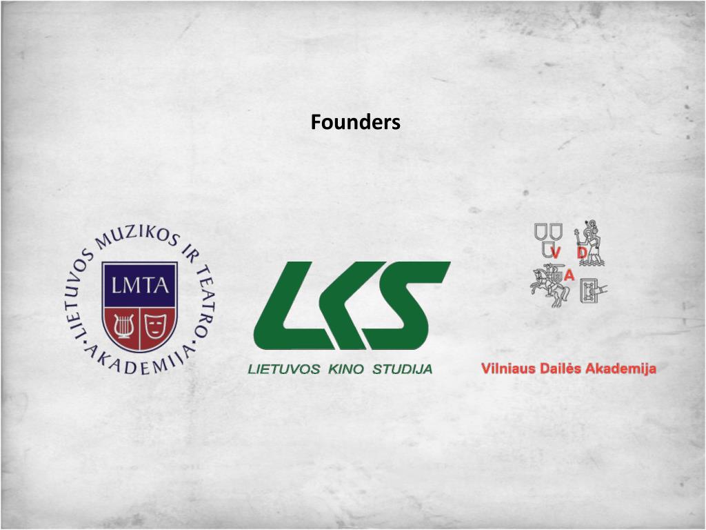 Audiovisual Arts Industry Incubator. Founders. ENTERPRENEURSHIP. TALENTS. COMMUNICATION. LMTA. OPPORTUNITIES. VDA. LKS. EXPORT. IMPROVEMENT. KNOWLEDGE. Audiovisual Arts Industry Incubator was supported by European Structural Funds (2007 – 2013, VP2-2.2-ŪM-02-V “Assistant-2”)