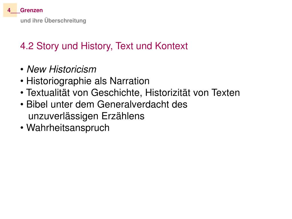 4__ _Grenzen und ihre Überschreitung 4.2 Story und History, Text und Kontext
