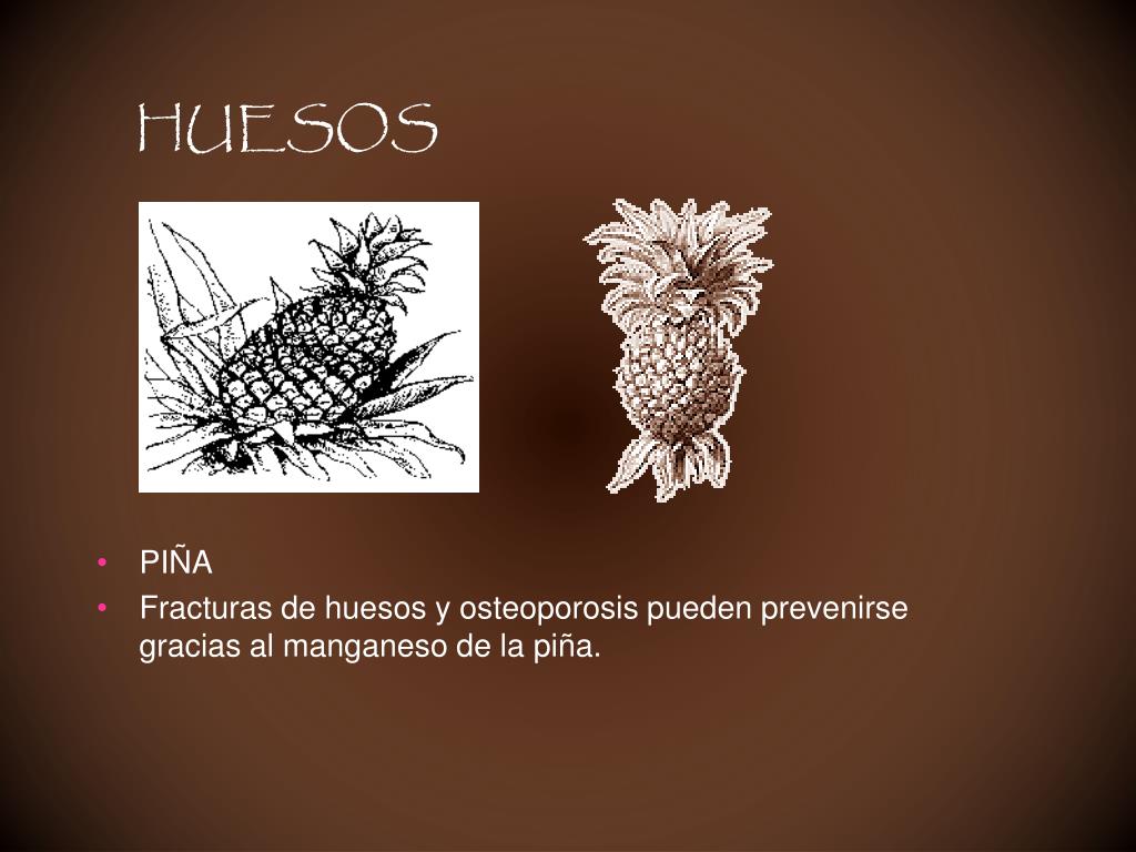 HUESOS • PIÑA • Fracturas de huesos y osteoporosis pueden prevenirse gracias al manganeso de la piña.