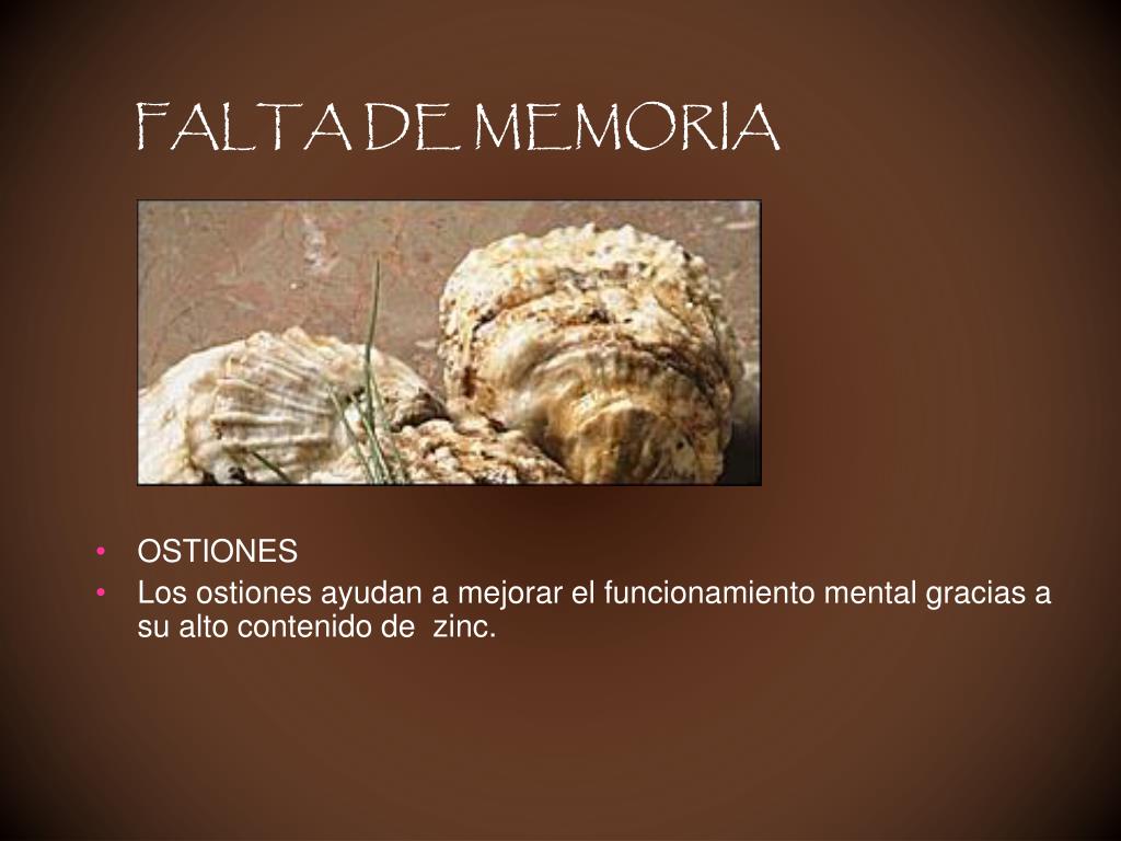 FALTA DE MEMORIA • OSTIONES • Los ostiones ayudan a mejorar el funcionamiento mental gracias a su alto contenido de zinc.